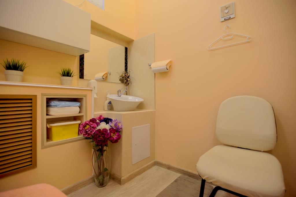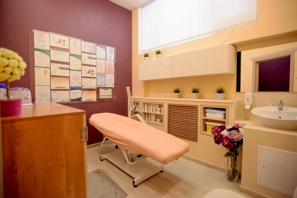 Косметический кабинет оборудован кушеткой на помповой гидравлике, аппаратами по омоложению лица и коррекции фигуры.