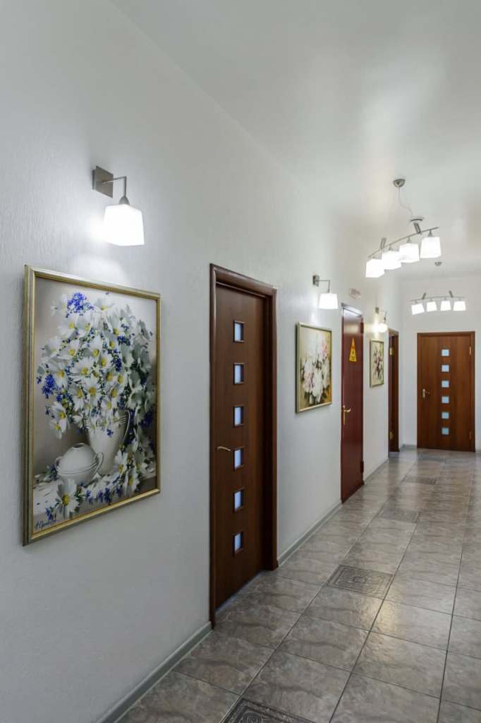Достойный ремонт в светлых тонах, а также трёхметровые окна, выходящие на южную сторону создают превосходную атмосферу. Солнце не покидает нас весь день. Входя в клинику испытываешь ощущение простора и уюта. Кабинеты оснащены полным набором необходимой медицинской мебели, кондиционерами. Есть подогрев полов. В наличии разрешающие документы согласно сегодняшним требованиям, проверки пройдены (имеются акты).