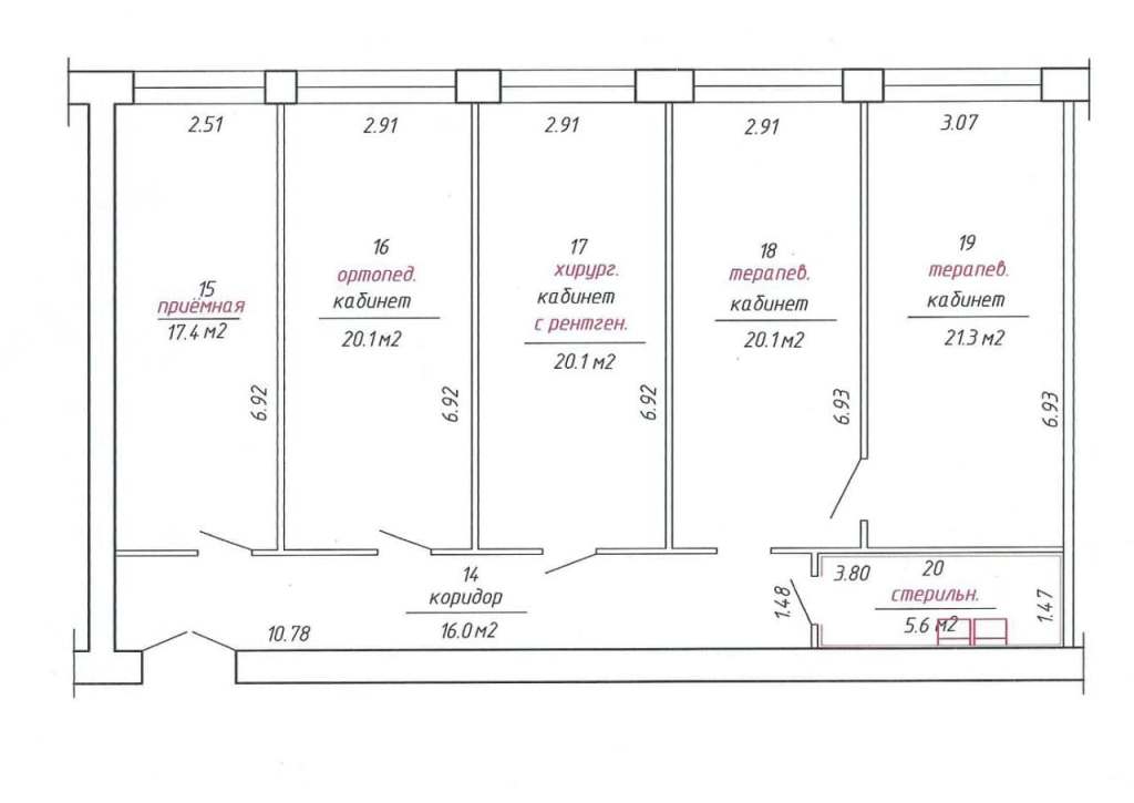 - 4 кабинета (по 20 м2, Высота потолков - 3,2 м.);