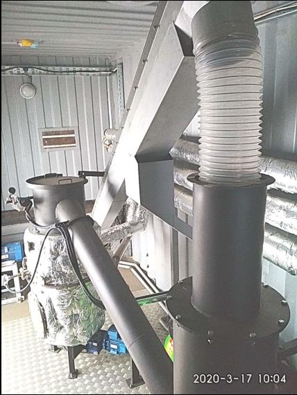 Комплекс состоит из четырех газогенераторов мощностью 80 кВт каждый, сушки щепы, теплогенератора с вентилятором.