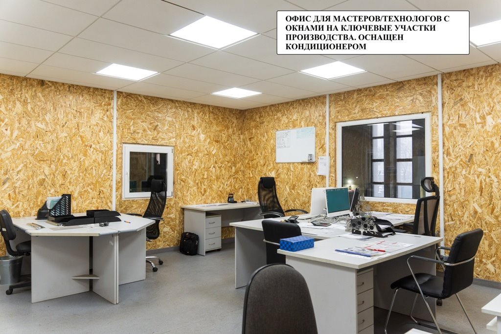 - бытовое помещение в цеху для ИТР площадью 36 м2 с компьютеризированными рабочими местами и кондиционером (новопостроенное), устроено WiFi покрытие;