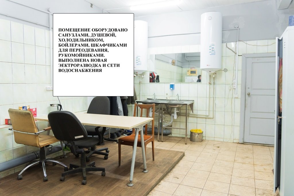 - бытовое помещение для рабочих, оснащенное санузлом, гардеробной и душевыми (свежий ремонт);