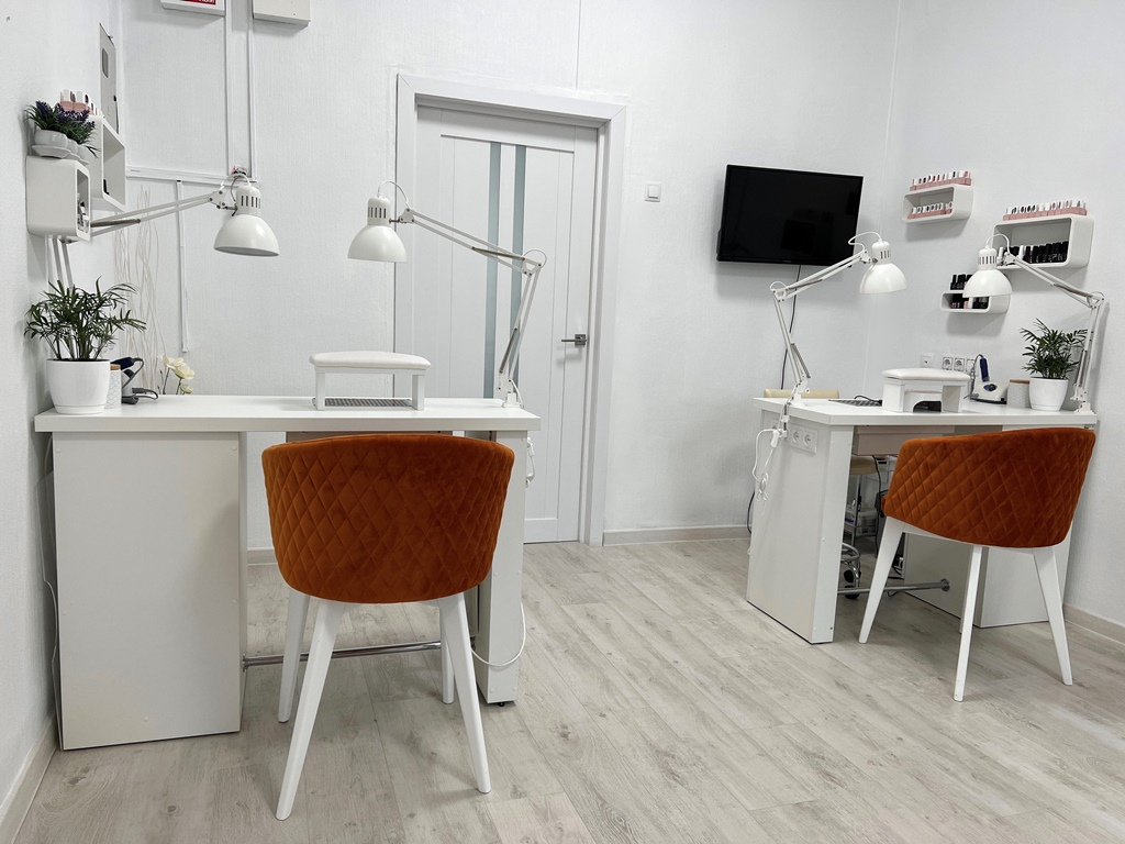 Парикмахерский зал (2 рабочих места - можно добавить 3-е), отдельный зал - кабинет маникюра (2 места) и педикюра, кабинет косметолога. Зона ожидания, отдельная зона отдыха для персонала. Каждое помещение оборудовано необходимым для ведения бизнеса. Мебель в отличном состоянии, ТВ, интернет, установлена камера видеонаблюдения в зоне ресепшен. В зоне ресепшен 3 большие витрины - что дает возможность реализации косметики.