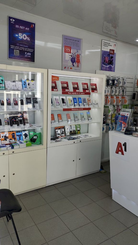 6) Салон связи А1 г. Жабинка, ул. Кирова 77 (м-н Универмаг, 1 этаж)