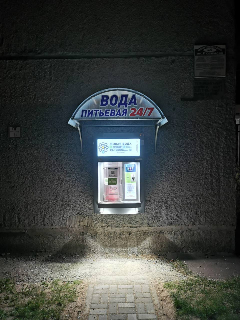 Потребитель может купить чистую питьевую воду высокого качества в свою тару круглосуточно через ваш аппарат, установленный на фасаде жилого дома (подъезде или во дворе)!