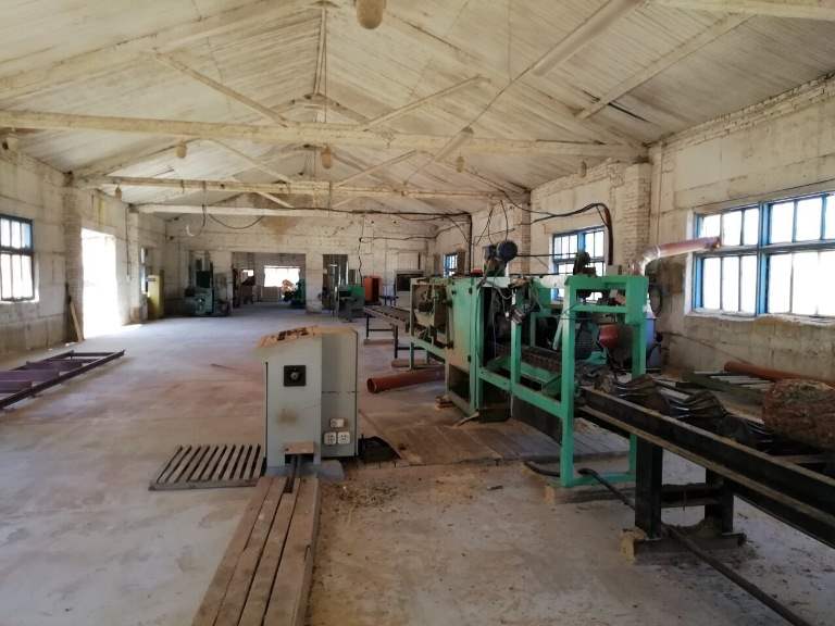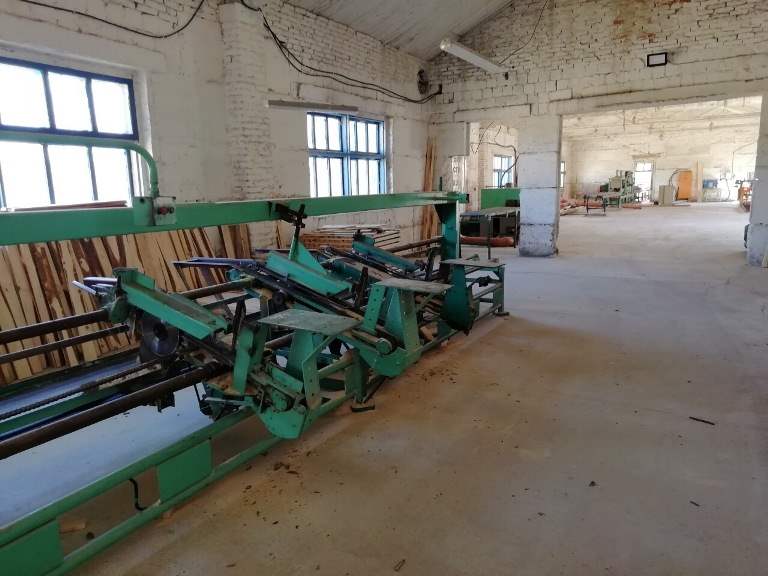 Оборудование находится в закрытом деревообрабатывающем цеху общей площадью 685 кв.м. (покрытие пола - бетон). Крытый навес (покрытие пола - бетон). Бытовой корпус 155 кв.м. Контора деревообрабатывающего цеха общей площадью 72,9 кв. м., Собственная КТП, скважина на территории. Общая территория базы 2,3 га. Асфальтированный подъезд и погрузочно-разгрузочная площадка.