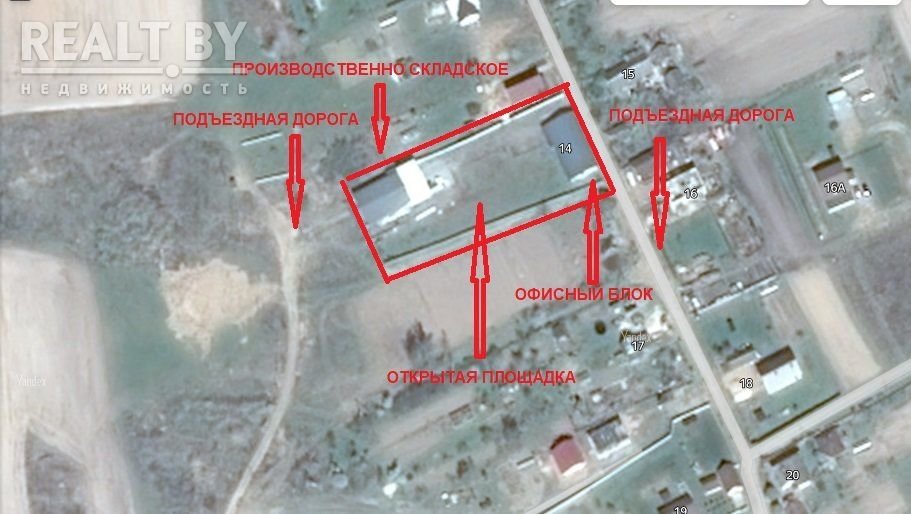 На участке 25 соток расположены два строения: административное 133 м2 и производственное 323,4 м2, территория огорожена металлическим забором. Все выведено в нежилой фонд. Земля в аренде на частном лице, не дорого по сравнению с юр. лицами. Есть две возможности подъезда к участку. Сквозной проезд.
