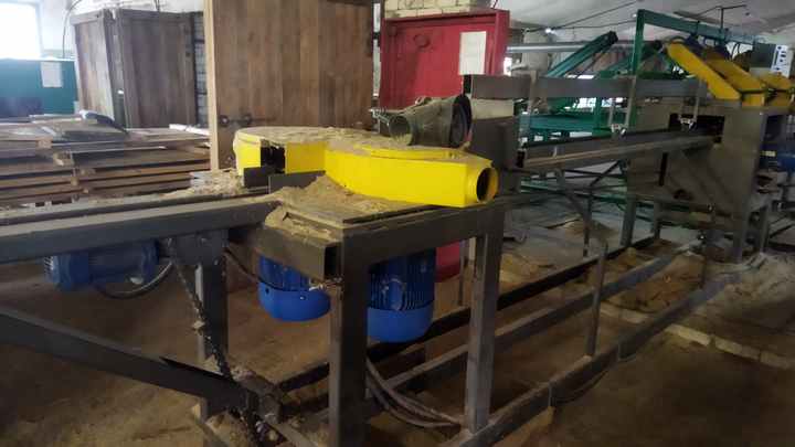 В конце линии, стоит электрическая щепорубительная установка.Помещение для опилок примерно на 90 м3.