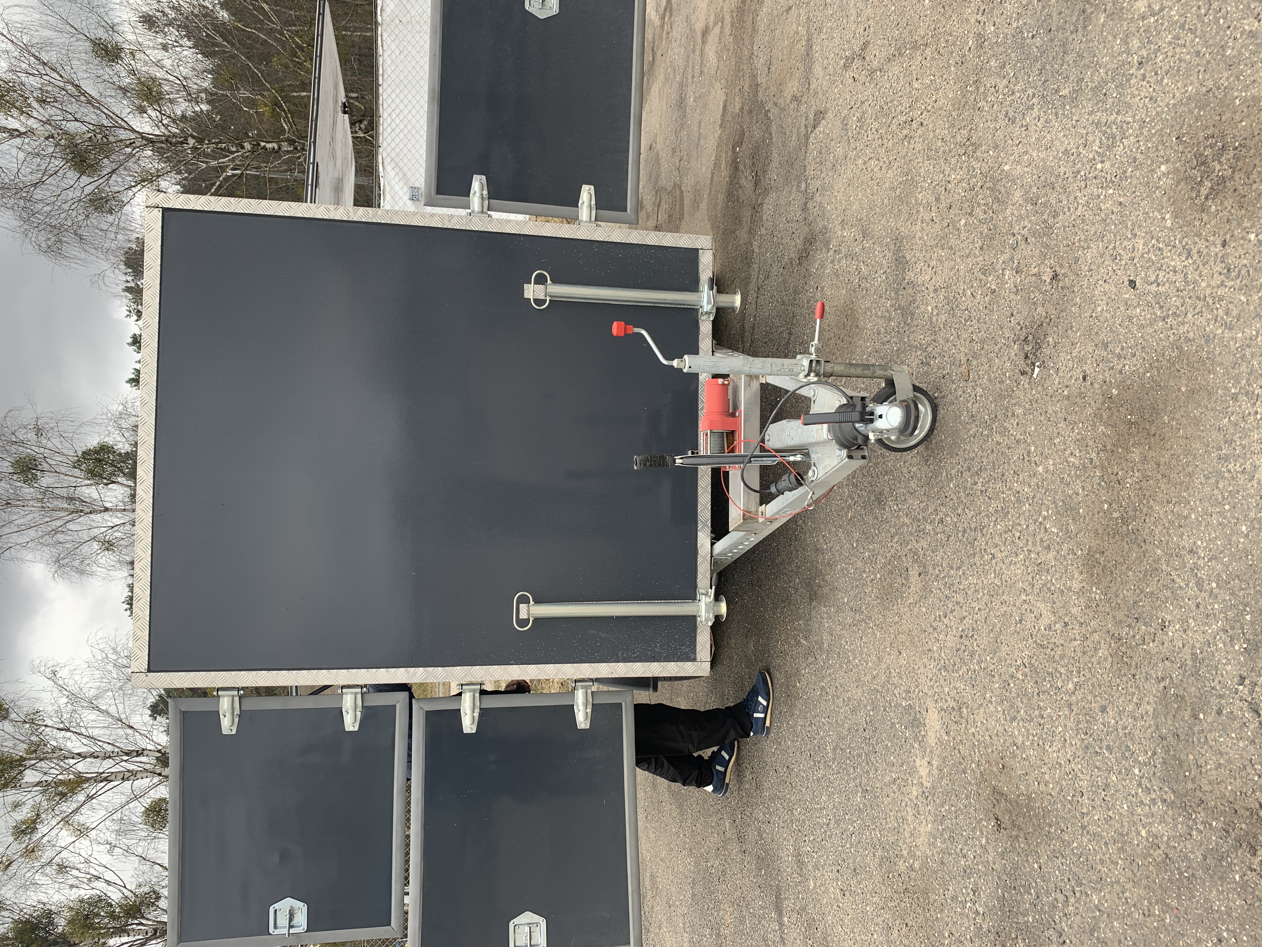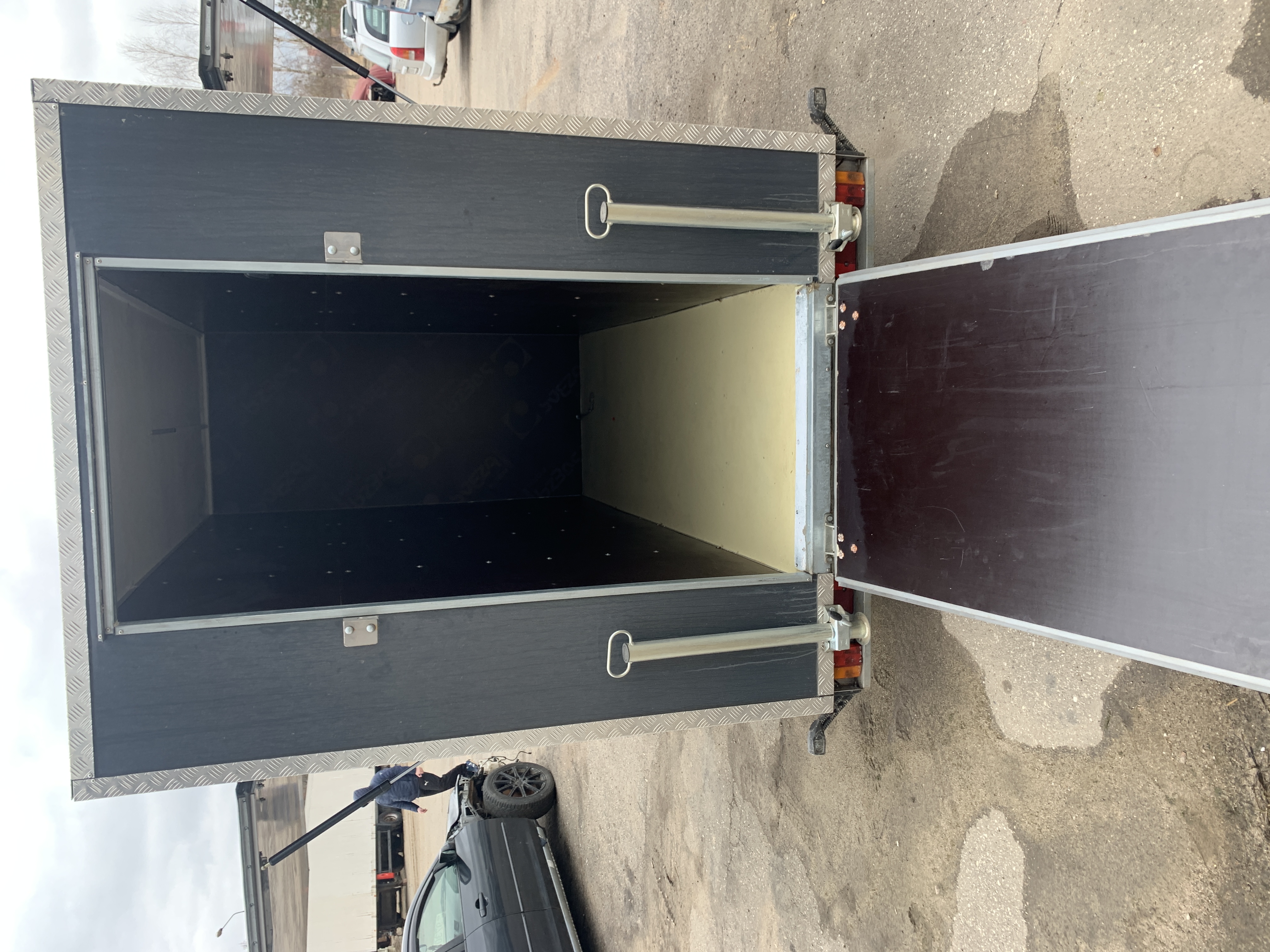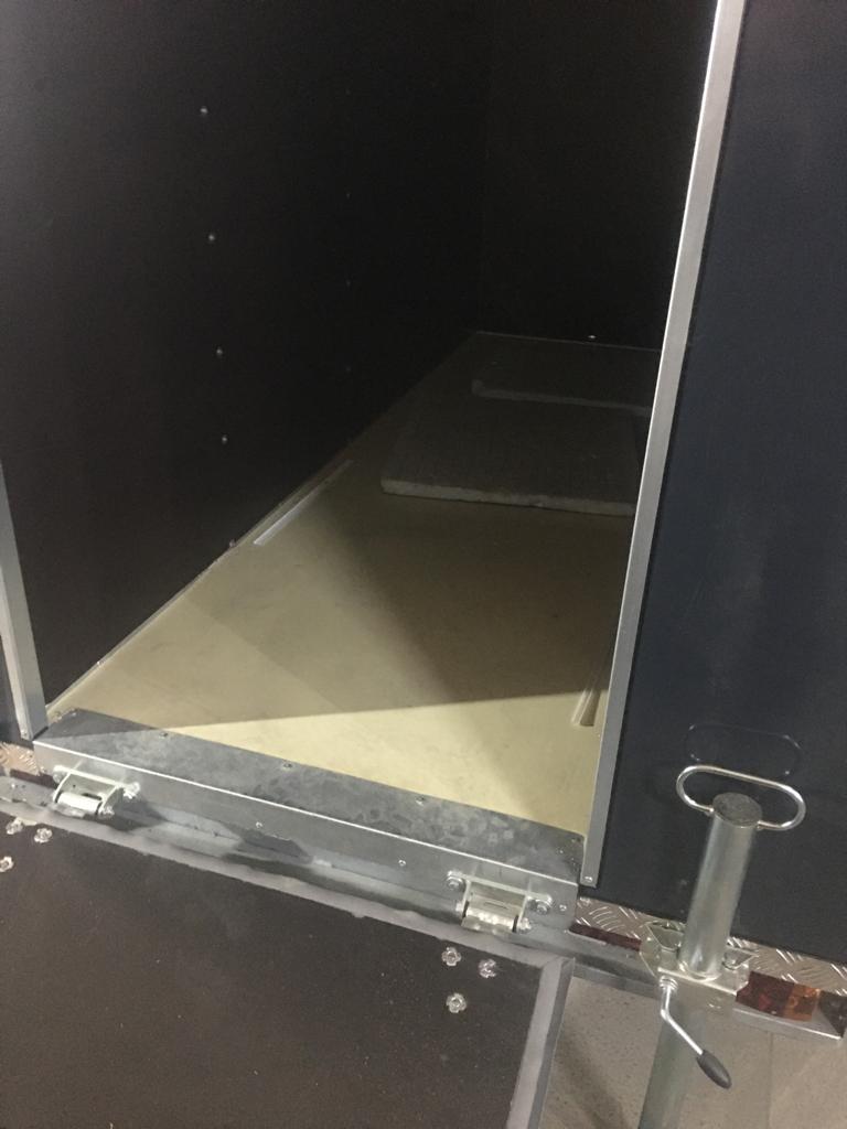 Отсек для собак - 2 шт. шириной 850-1000 мм, глубиной 700-740 мм, высотой 750-800 мм расположенные в передней части прицепа с дверцами и замком из оцинкованной стали и вентрешетками.