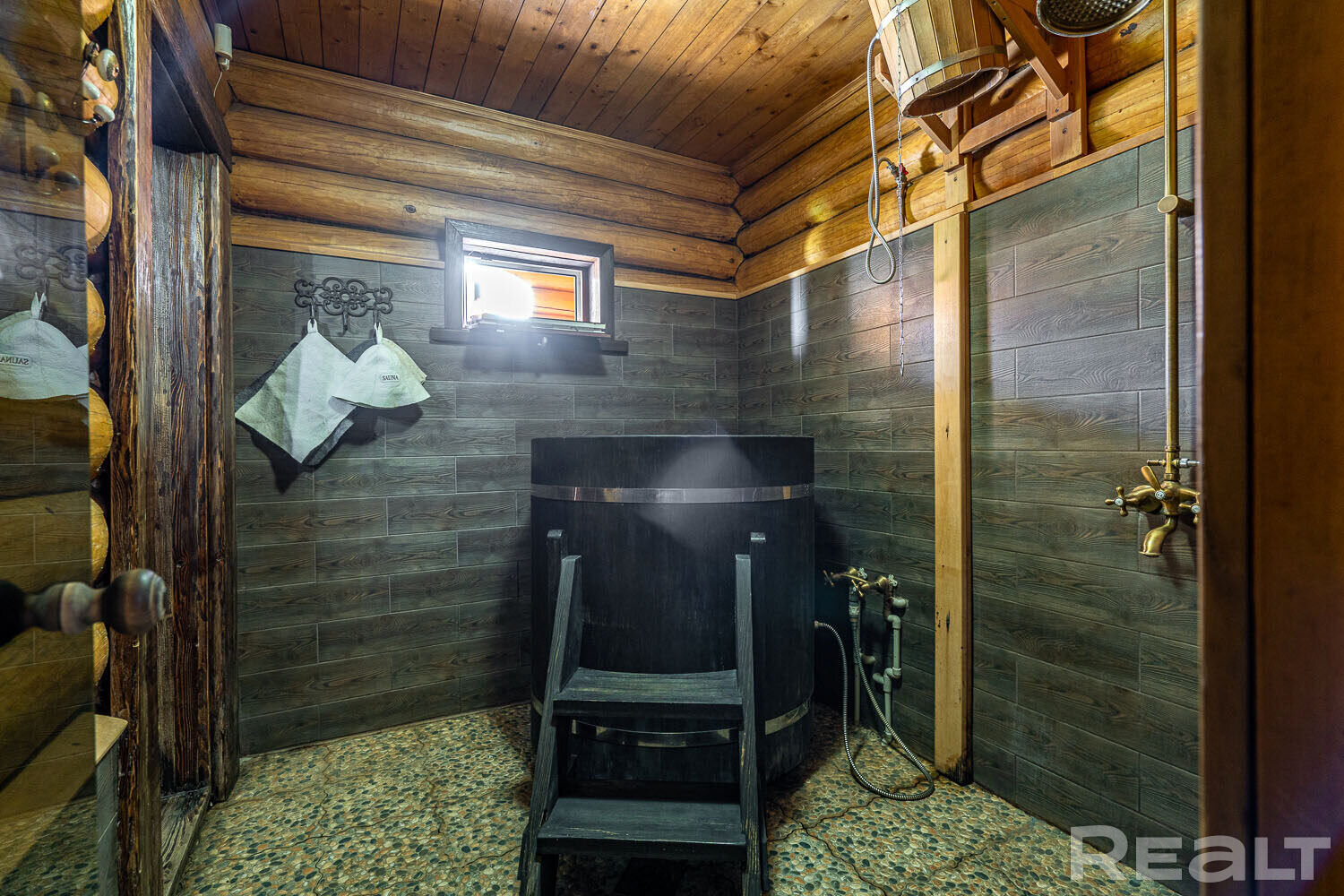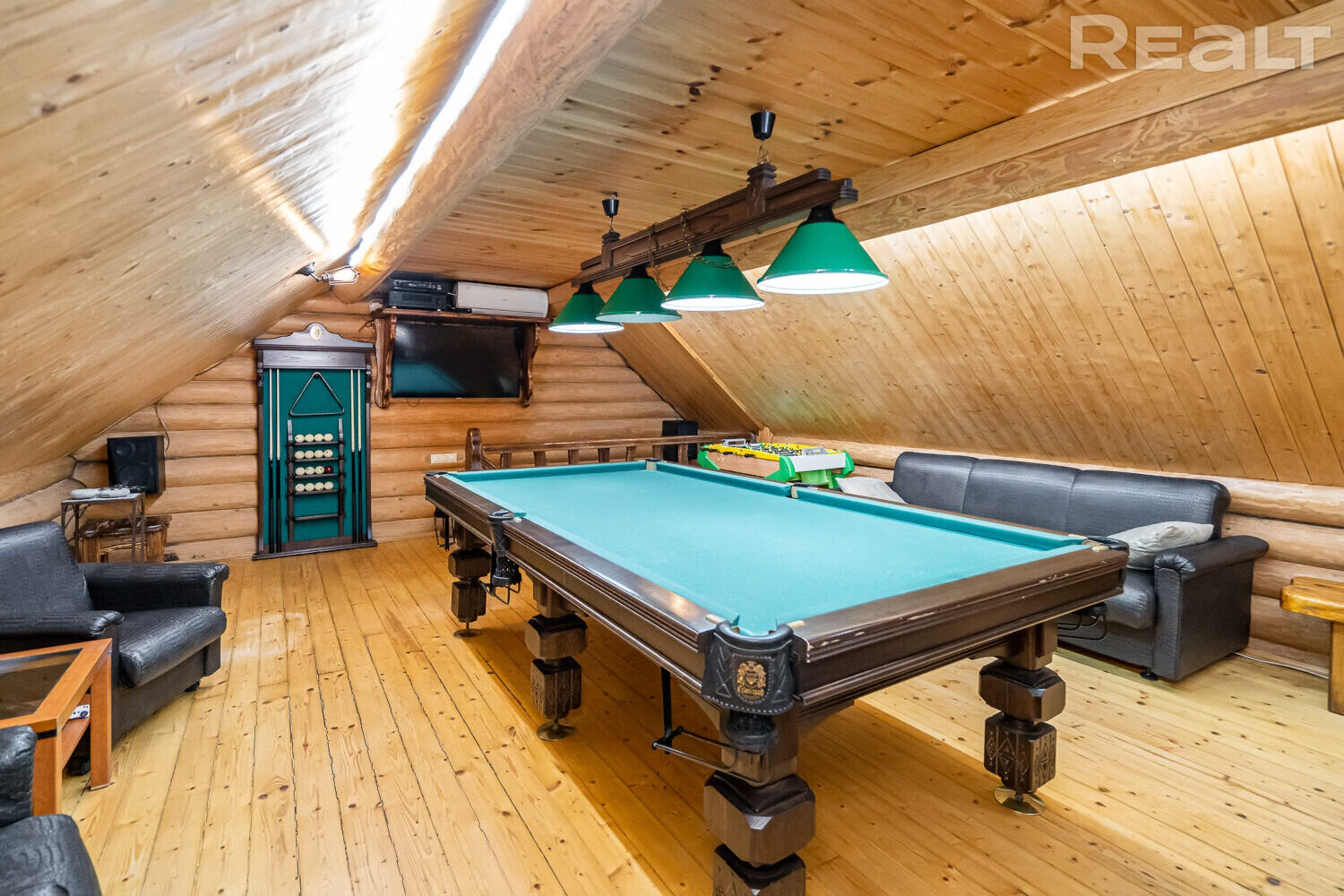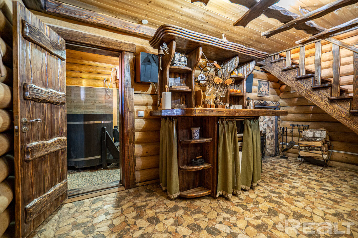 -Русская баня - 80 м2: оцилиндрованное бревно, отделка из натуральной осины, природные соляные слитки, второй этаж с бильярдной и зоной отдыха.