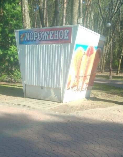 Находится в центре парка им. Челюскинцев 300 м от станции метро на перекрестке. Оснащён морозильной витриной, морозильником, весами и пр.